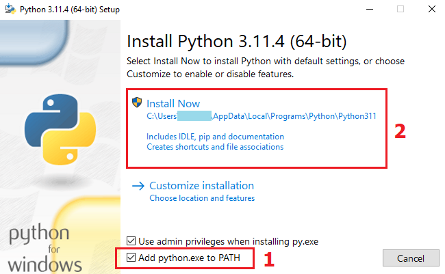 نصب پایتون بسیار آسان است. بعد از اجرا کردن فایل دانلود شده مراحل نصب را آغاز میشود. دقت کنید ابتدا گزینه Add python.exe to PATH را تیک بزنید و سپس روی گزینه Install Now کلیک کنید.